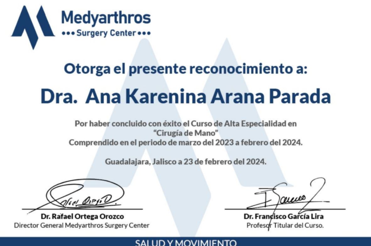 Mucha experiencia en su campo y muy profesional• Medyarthros Surgery Center • Visita Cirugía de la Mano •