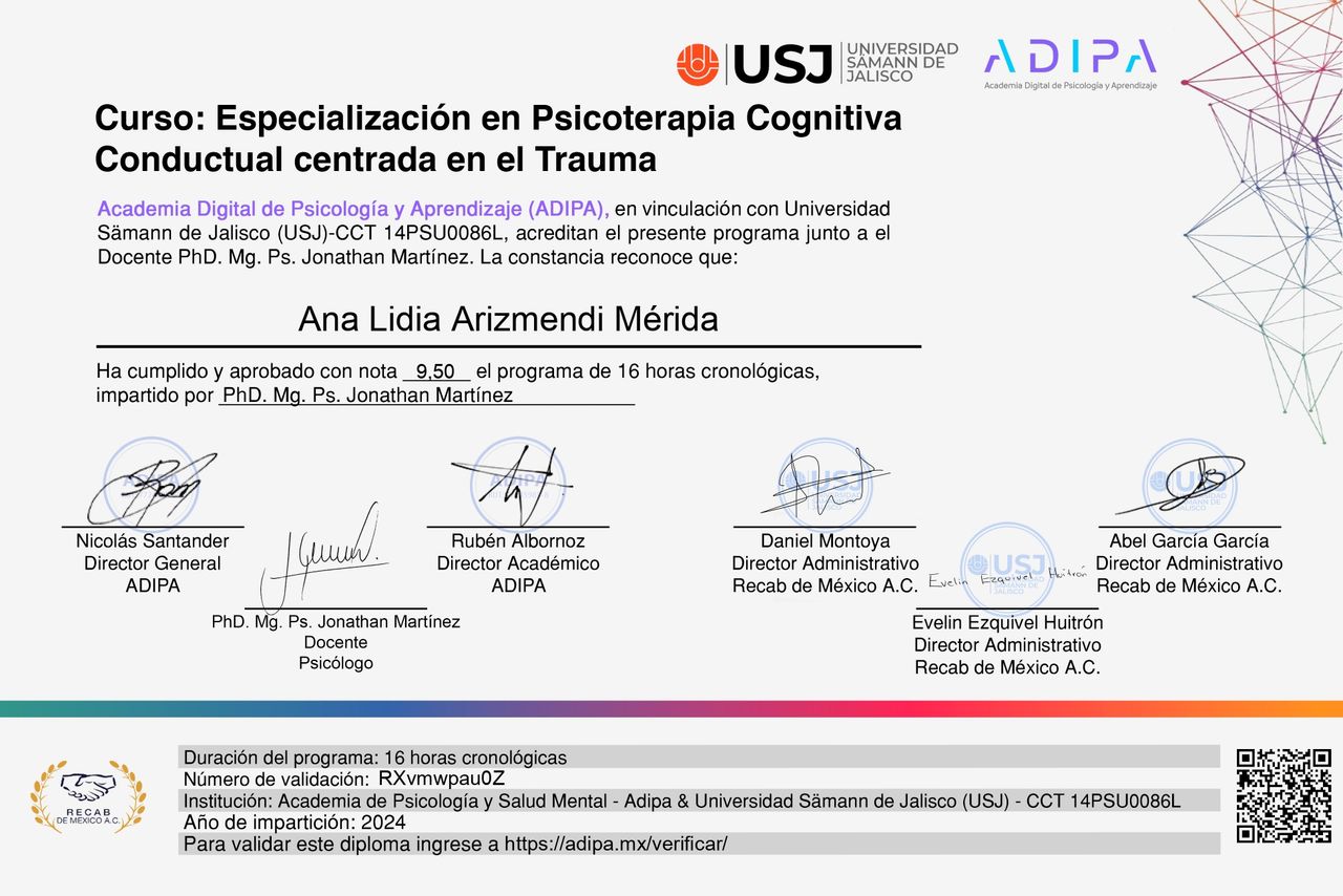 trabajo con enfoque cognitivo/conductual con más de 8 años de experiencia
