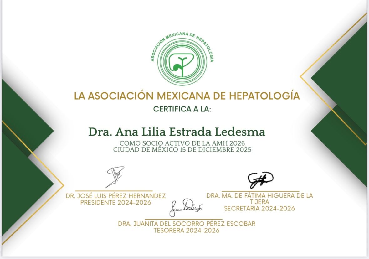 Soy la Dra Ana Lilia Estrada Ledesma, realicé mi Postgrado en Gastroenterología en Hospital de Especialidades, Centro Médico Nacional de Occidente