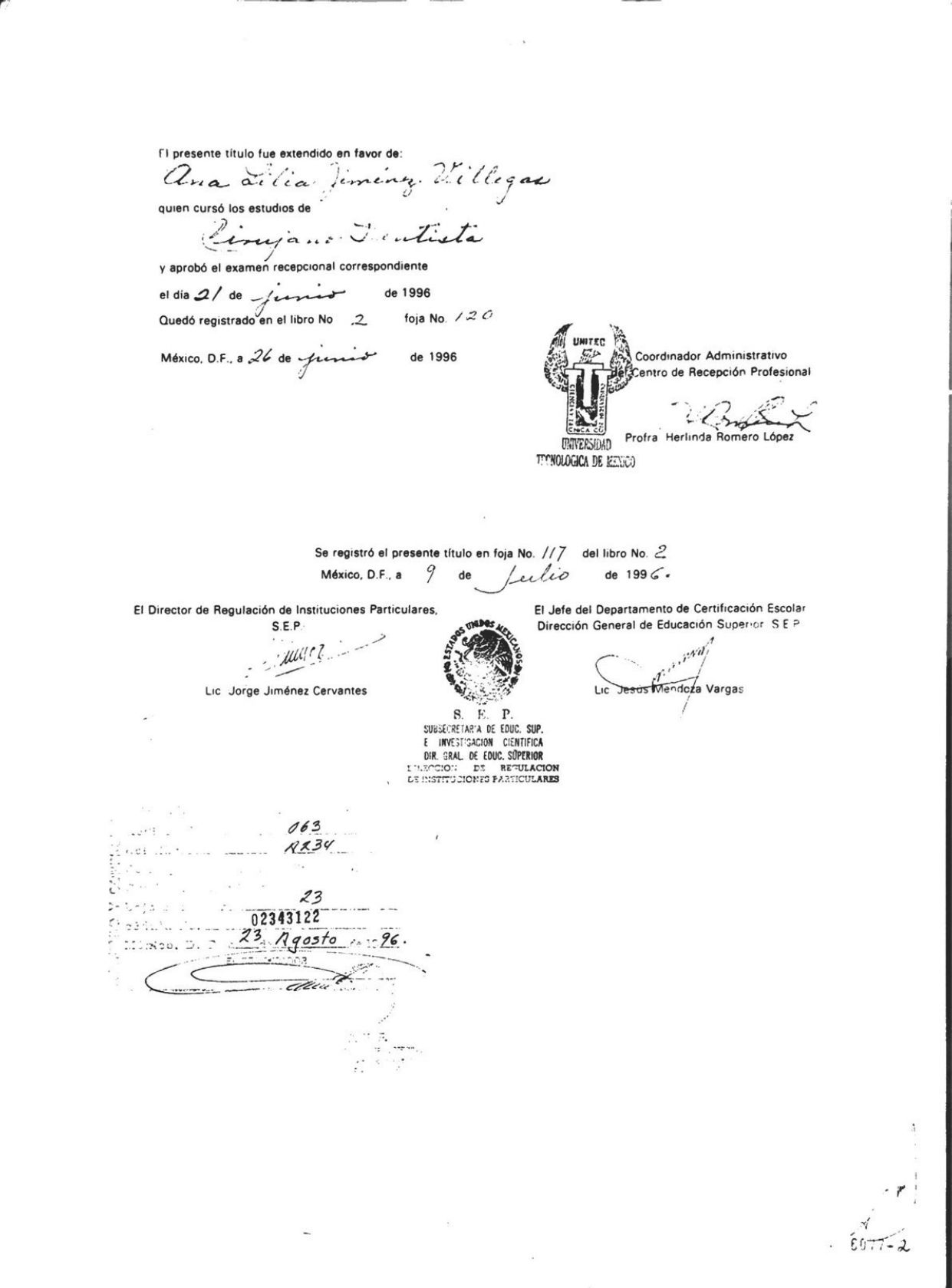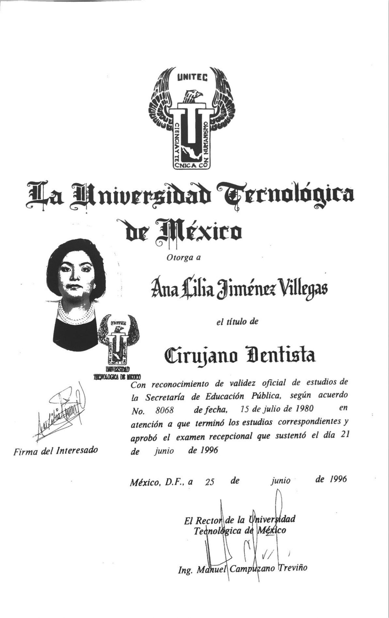 Egresada de la Facultad de Odontología de la Universidad Tecnológica de México (UNITEC).
