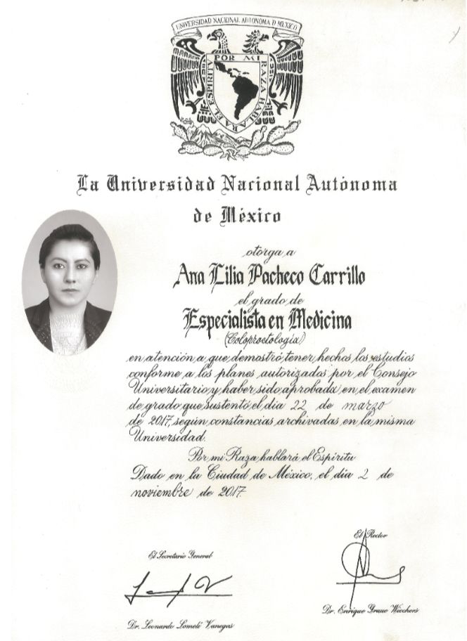 Certificada por el Consejo Mexicano de Especialistas en Coloproctología.