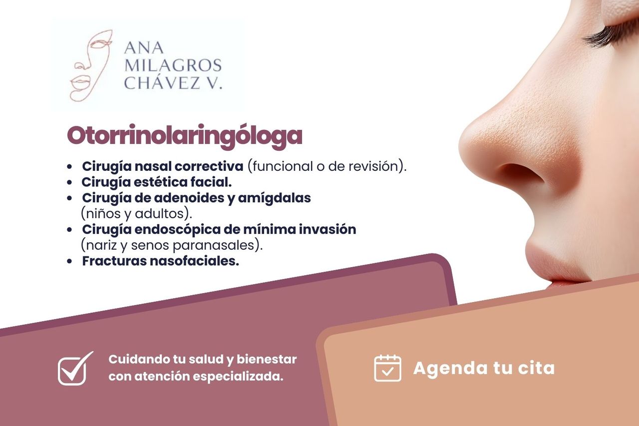 Hola! Soy Ana Milagros Chávez tengo 44 años y soy Especialista Otorrinolaringologa, con amplia experiencia en Rinología. Egresada del hospital Regional Dr Valentin Gomez Farias en el 2010 y recertificada a la actualidad. Actualmente entregada a la Atención Medica Privada, mi consultorio esta en el Hospital Santa Maria Chapalita en Zapopan Jalisco, donde estoy para servirles con mucho gusto.
