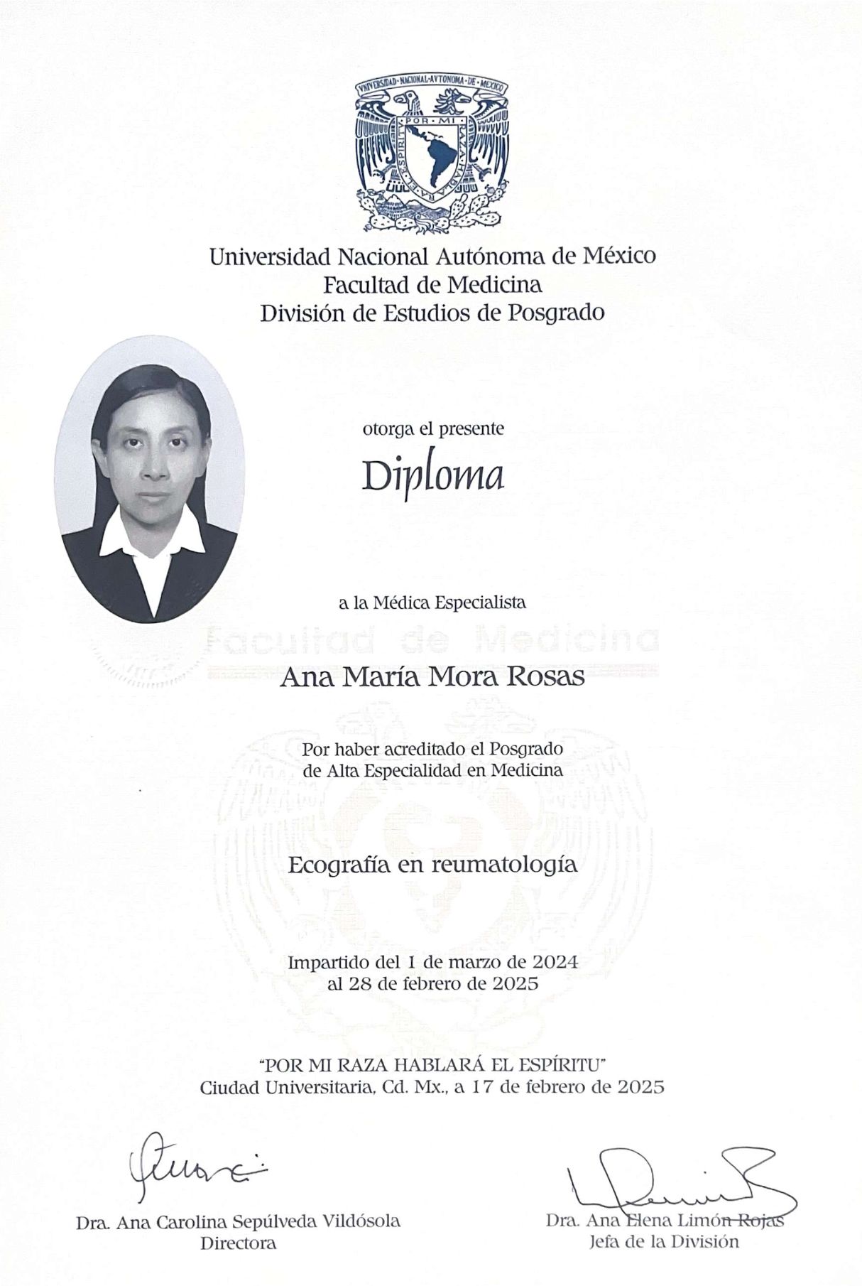 Soy médica especialista en Reumatología, con formación adicional en ultrasonido musculoesquelético y articular ( avalada por la UNAM ), esta es una herramienta diagnóstica clave que utilizo para evaluar de forma precisa y no invasiva las articulaciones y tejidos blandos, así como guía para procedimientos terapéuticos