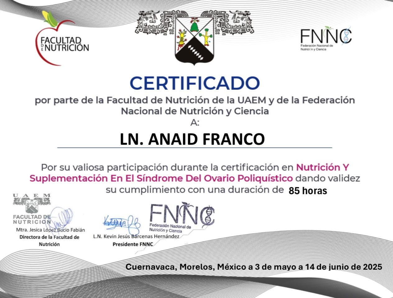 Anaid es una excelente persona y profesional. Me explicó a detalle y me contestó todas mis dudas. Me elaboró una guía de alimentación acorde a mis necesidades y conforme a lo que me gusta. La recomiendo ampliamente.