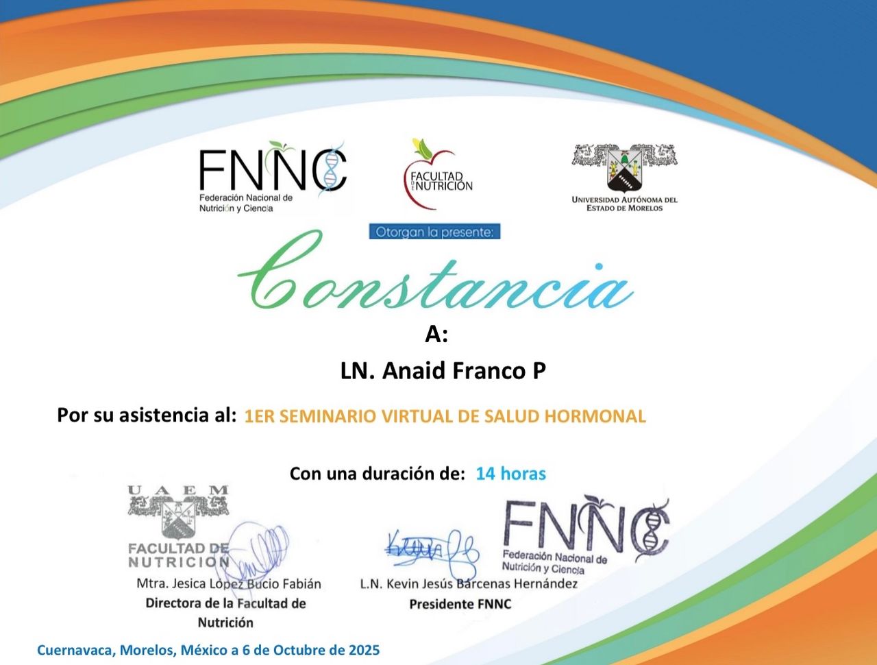 Fue mi primer cita con Anaid y debo destacar la gran calidad de profesional que es. Escuchó con atención mis palabras y entendió perfectamente mis metas. En la cita se toma el tiempo de entender tu contexto y tus necesidades. Logré entender a la perfección el plan a seguir y ahora una semana después de haber iniciado con el, me siento muy cómoda y feliz!
