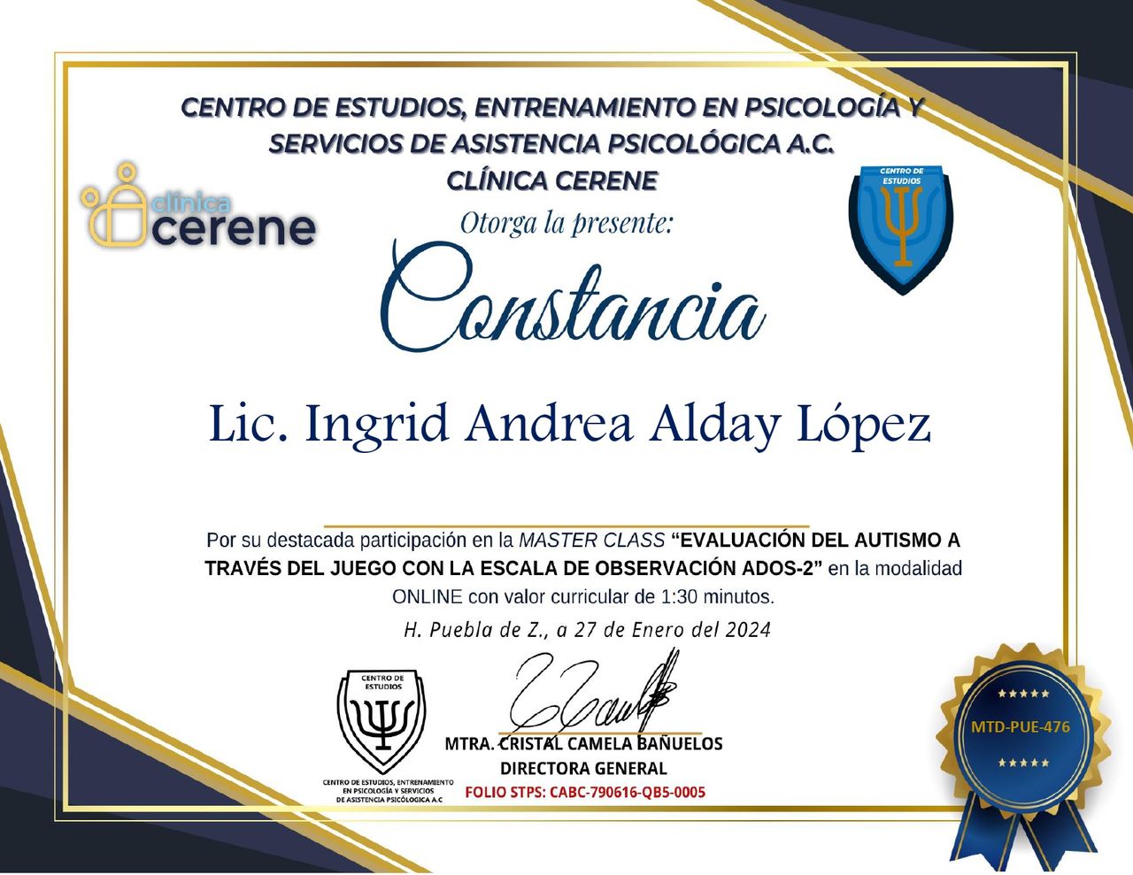 La Lic. Andrea Alday mostró un trato muy amable y profesional durante la realización de las pruebas neuropsicológicas. Me hizo sentir en confianza y fue muy clara en sus indicaciones.
