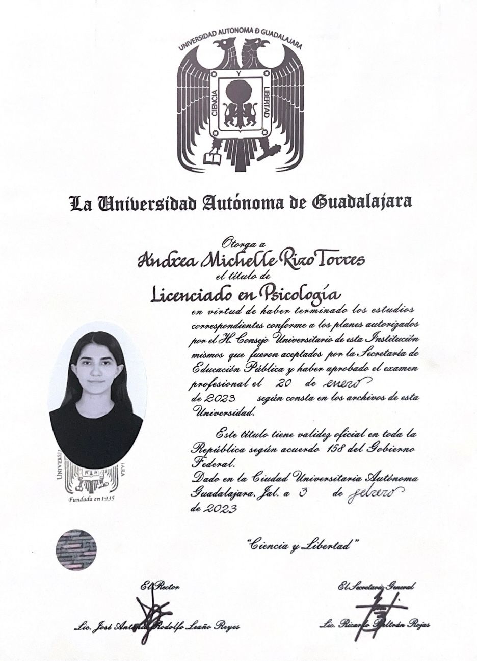 ¡Hola, mucho gusto! Me agrada que se dirijan a mí como Mich o Michelle. Me considero una persona sincera, abierta y relajada. Estudié la licenciatura en Psicología en la UAG y actualmente soy maestrante en Terapia Cognitivo-Conductual por parte del Centro de Psicoterapia. Además de la consulta privada que actualmente ejerzo, trabajé en un centro de rehabilitación centrado en adicciones, lo cual me brindó una amplia experiencia debido a la complejidad de los casos. Busco que mis pacientes se sientan en un lugar cómodo y seguro, donde no se sientan juzgados y puedan expresarse libremente.