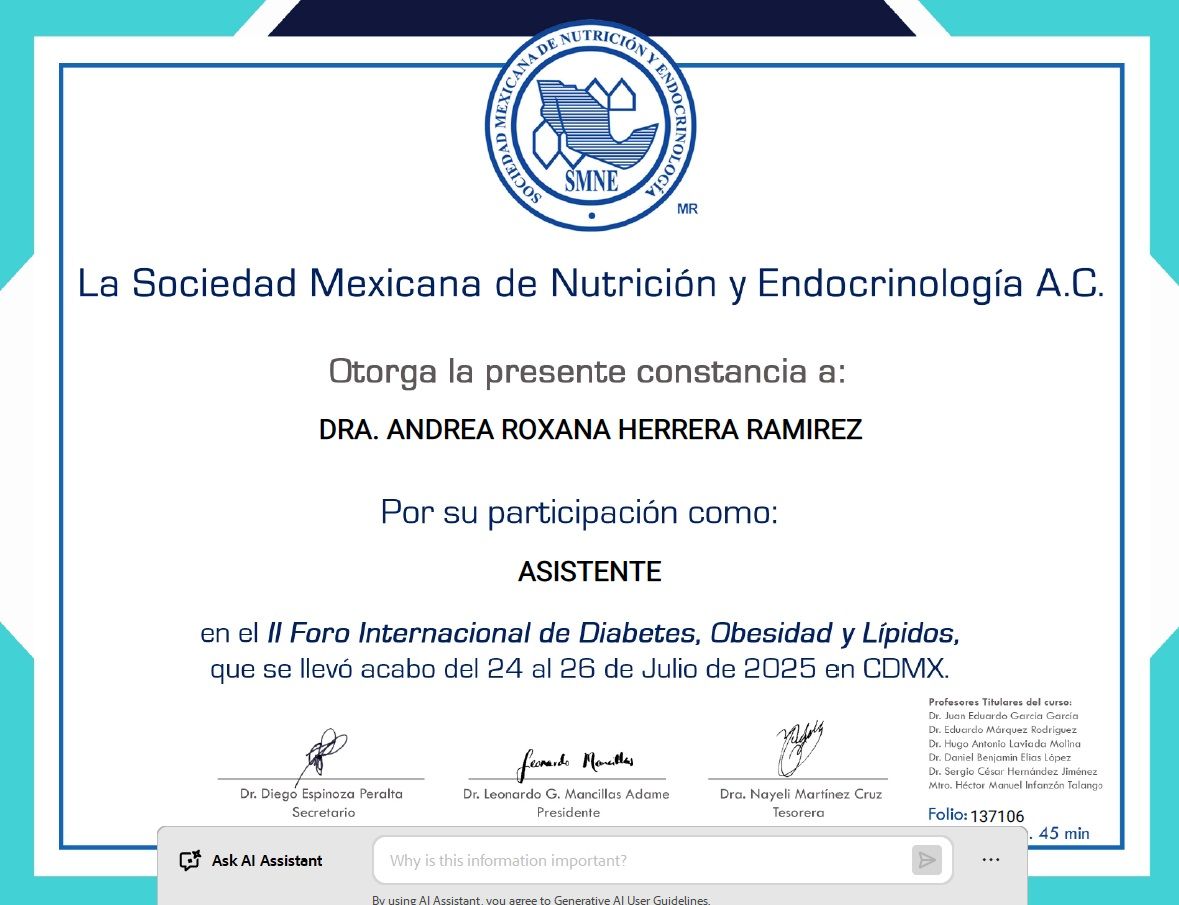 La doctora Andrea es muy profesional y atenta en sus citas. Me gustó mucho su trato y explicaciones.