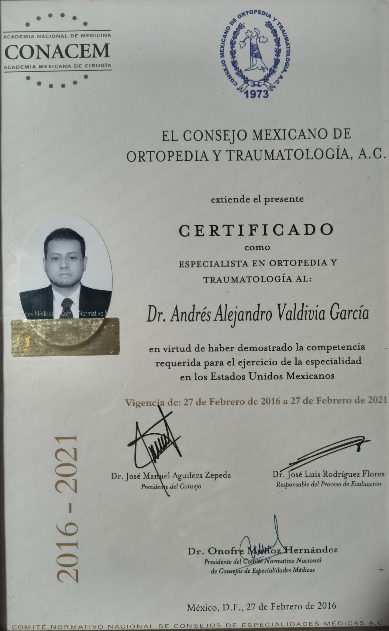 Medico especialista en ortopedia y traumatología con mas de 10 años de experiencia. Egresado de la Universidad de Guadalajara como medico cirujano y partero, egresado de la Universidad de Colima como especialista de Ortopedia y traumatología. Medico especialista laborando desde hace 10 años en el Instituto Mexicano del Seguro Social. Certificado ante el Consejo Mexicano de Ortopedia y Traumatología. Manejo conservador y quirúrgico de fracturas, lesiones deportivas, problemas de espalda, infiltraciones.