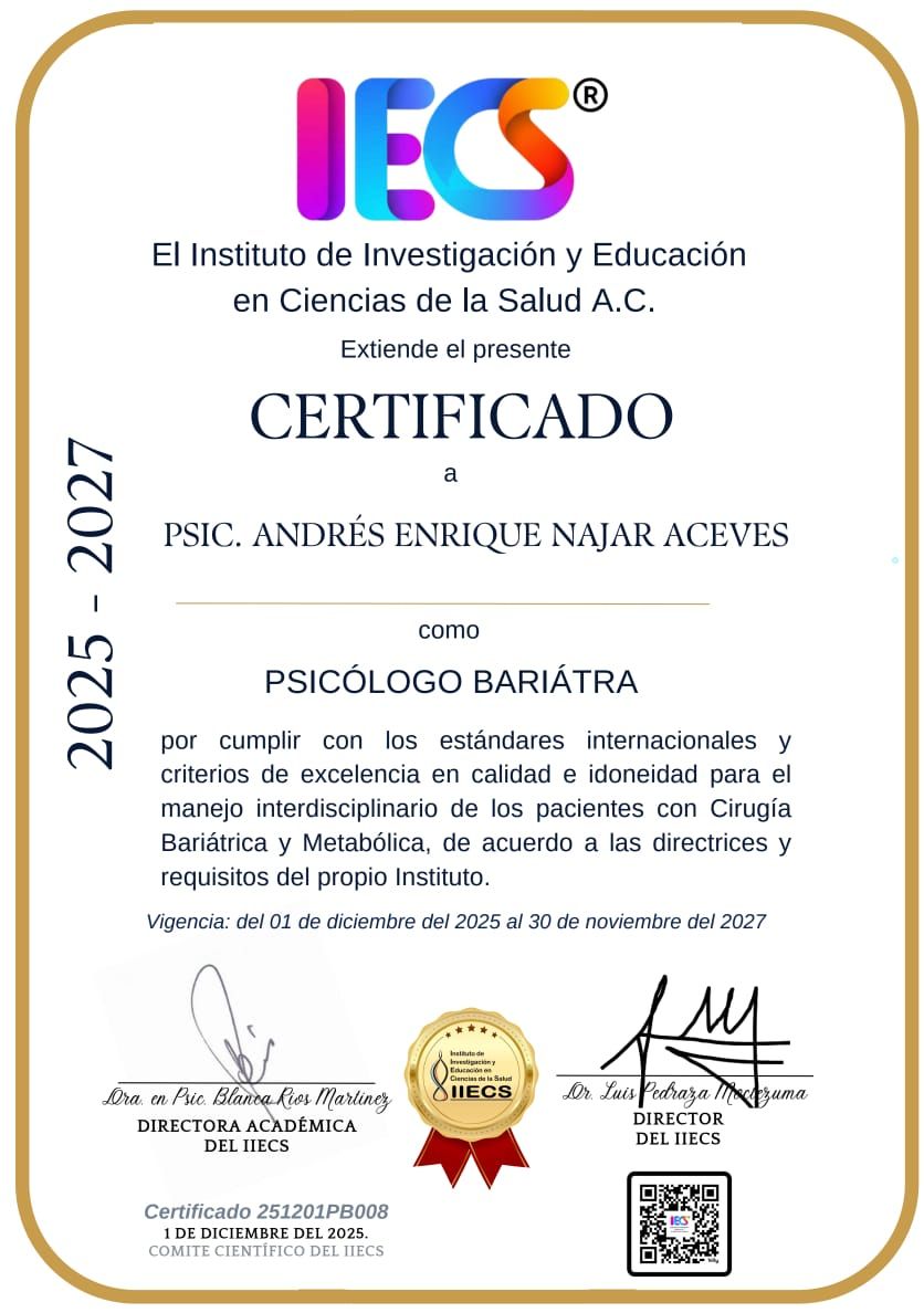Diplomado en Psicología Bariátrica por el Colegio Mexicano de Cirugía para la Obesidad y Enfermedades Metabólicas A.C.