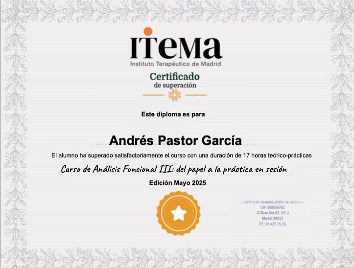 El proceso ha sido excelente, significativo y transformador. Me siento acompañado por un profesional serio y, al mismo tiempo, por un ser humano genuinamente comprometido con mi bienestar.