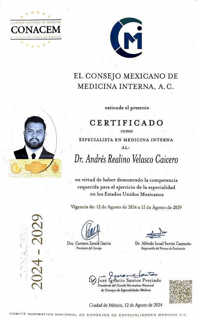 Soy el Dr. Andrés Velasco, especialista en Medicina Interna, con enfoque diagnóstico integral, control de enfermedades como diabetes, hipertensión, tiroides, colesterol, manejo de pacientes con enfermedades complejas y valoración de adultos mayores.