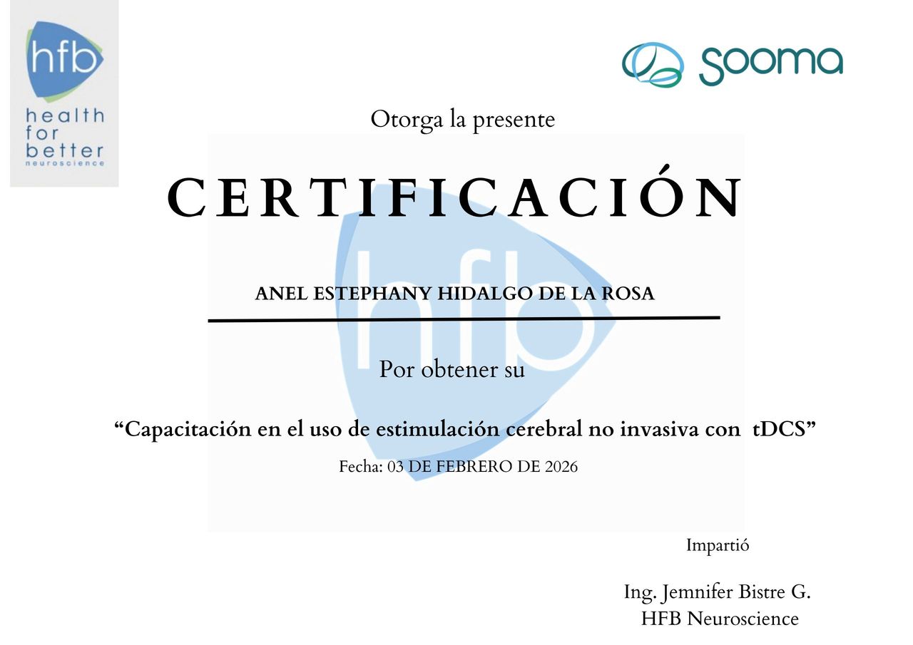 Estoy certificada en la impartición de talleres y tengo experiencia en la aplicación de Estimulación Magnética Transcraneal, incorporando herramientas actualizadas y basadas en evidencia científica para favorecer procesos terapéuticos sólidos y personalizados.