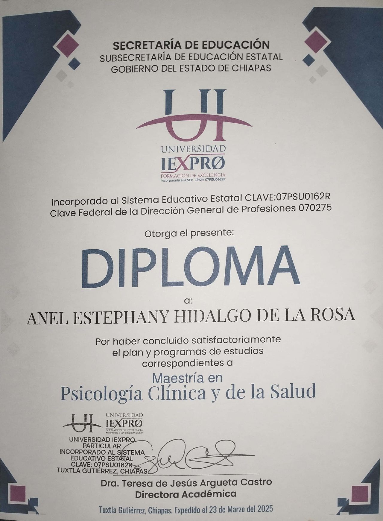 Soy psicóloga clínica y acompaño a adolescentes, adultos y adultos mayores en sus procesos emocionales desde una mirada profesional, ética y profundamente humana. Cuento con Maestría en Psicología Clínica y de la Salud, así como con especialidad en Dirección Estratégica de Capital Humano, lo que me permite integrar una comprensión integral del bienestar psicológico con el desarrollo personal y profesional.