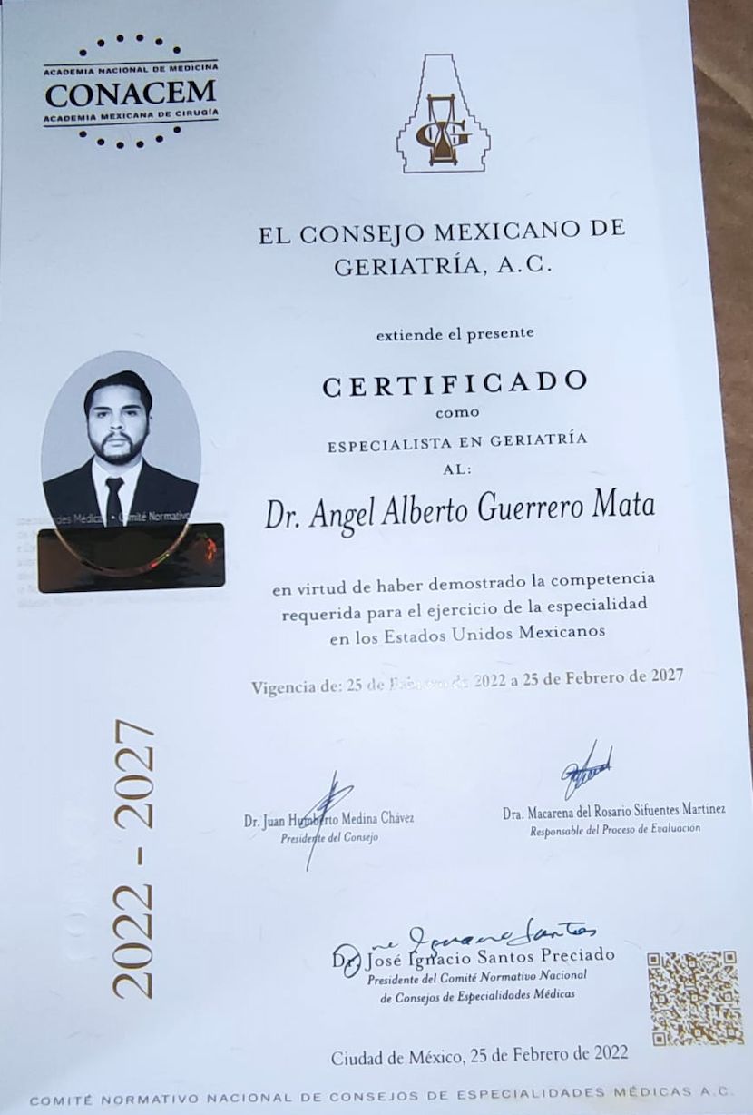 Soy médico Geriatra certificado por el Consejo Mexicano de Geriatría.