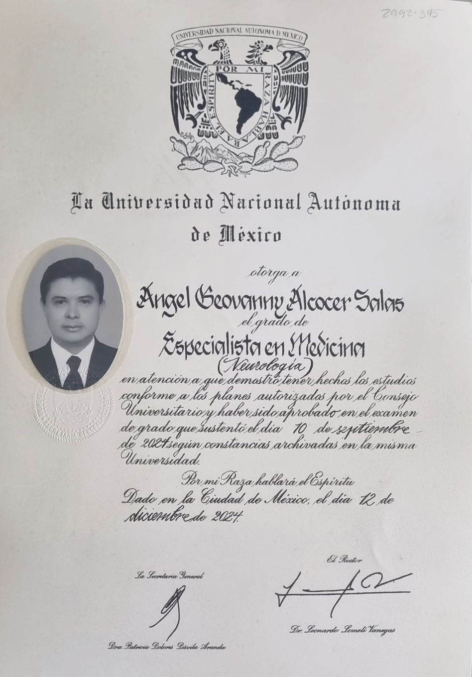 Soy el Dr. Angel Alcocer Salas, médico neurólogo con alta especialidad en enfermedades neurodegenerativas y trastornos del movimiento, con un enfoque clínico y académico orientado al diagnóstico preciso, el tratamiento integral y la toma de decisiones basadas en evidencia científica.