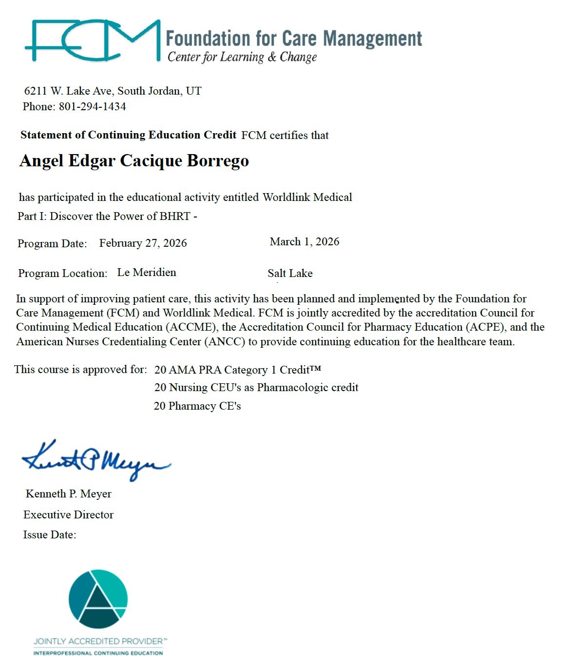 Certificación vigente en Biología de la Reproducción Humana por el Consejo Mexicano de Ginecología y Obstetricia.