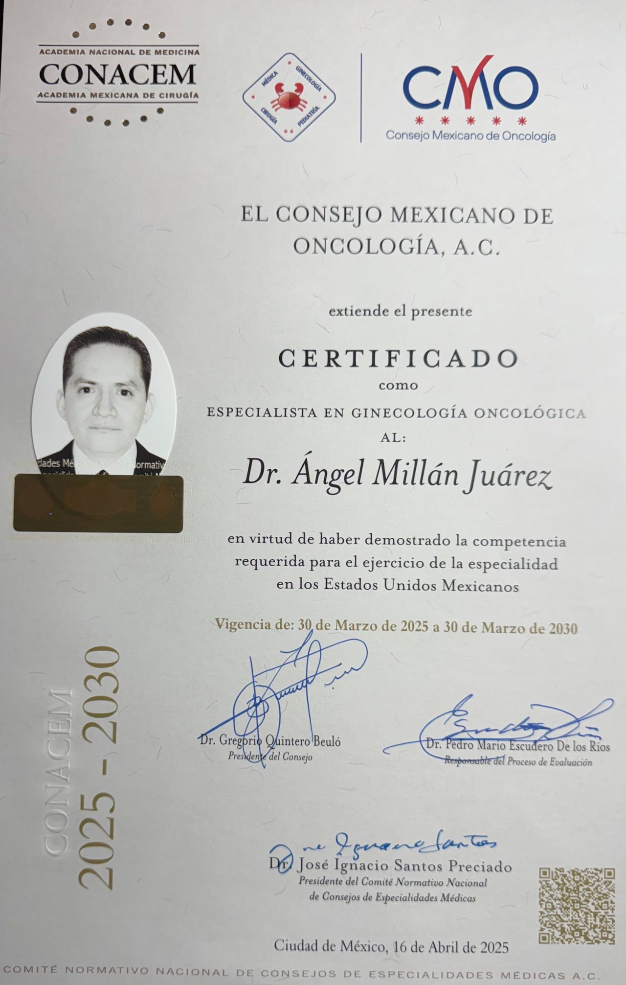 Soy un médico militar que ha dedicado su vida al estudio de las enfermedades y tratamiento de patologías benignas y malignas en la mujer, además de los problemas en la atención del embarazo normal y de alto riesgo, así como de las lesiones precursoras del cáncer; cuento con la subespecialidad en ginecología oncológica y cirugía Robótica. Actualmente me desempeño como jefe del servicio de ginecología en el hospital militar de especialidades de la mujer y neonatología, Ciudad de México; siendo mi prioridad buscar el bienestar de mis pacientes, realizando un diagnóstico oportuno, óptimo con calidad y calidez.