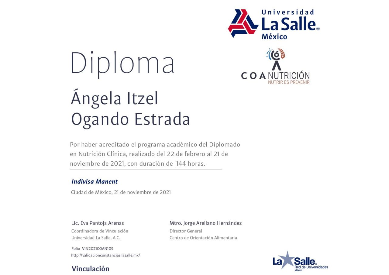 Mi nombre es Angela Ogando, nutrióloga titulada y certificada, con cinco años de experiencia brindando atención nutricional de manera presencial y remota.