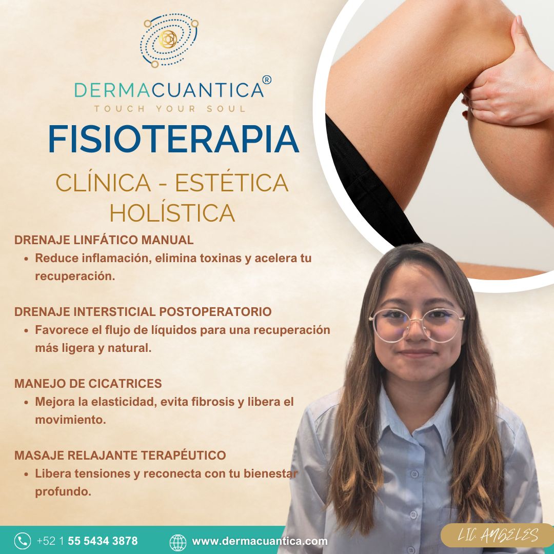 Soy Ángeles López, Licenciada en Terapia Física y Rehabilitación especializada en Fisioterapia Dermatofuncional, la disciplina que revoluciona el cuidado integral de tu piel desde adentro hacia afuera. Mi pasión es transformar no solo la apariencia de tus tejidos, sino restaurar su funcionalidad y vitalidad natural.