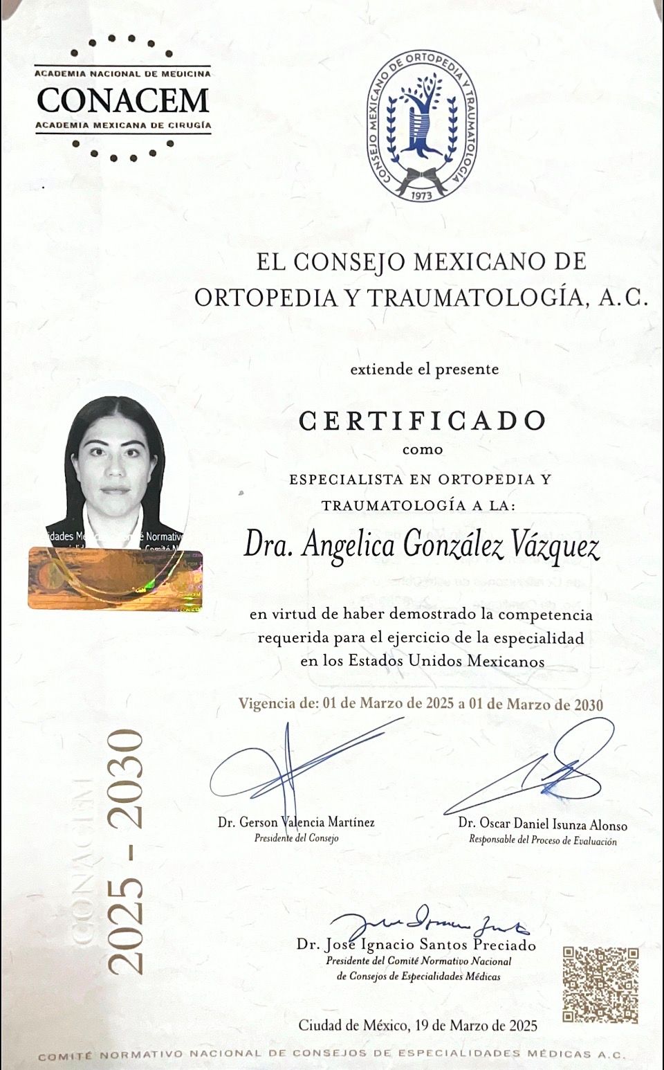 Excelente atención por parte de la Dra Angelica. Está actualizada en cuanto a los tratamientos de traumatología y ortopedia, acudí por una recomendación que me hicieron y ahora yo se las recomiendo a ustedes