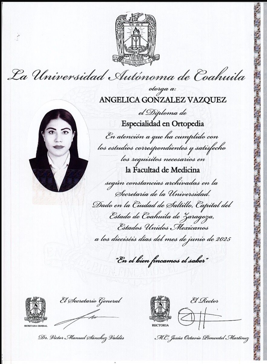 Soy egresada de la Unidad Médica de Alta Especialidad No. 71, Torreón Coahuila y avalado por la UAC