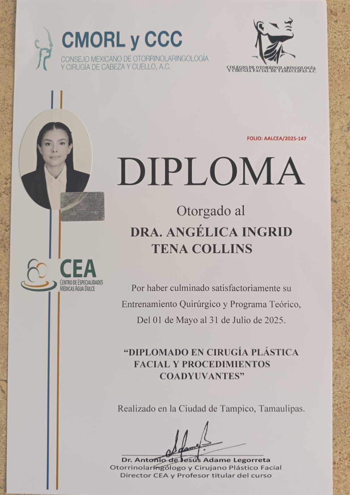 Soy la Dra. Angélica Ingrid Tena Collins, especialista en Otorrinolaringología y Cirugía estética y funcional de cabeza y cuello.