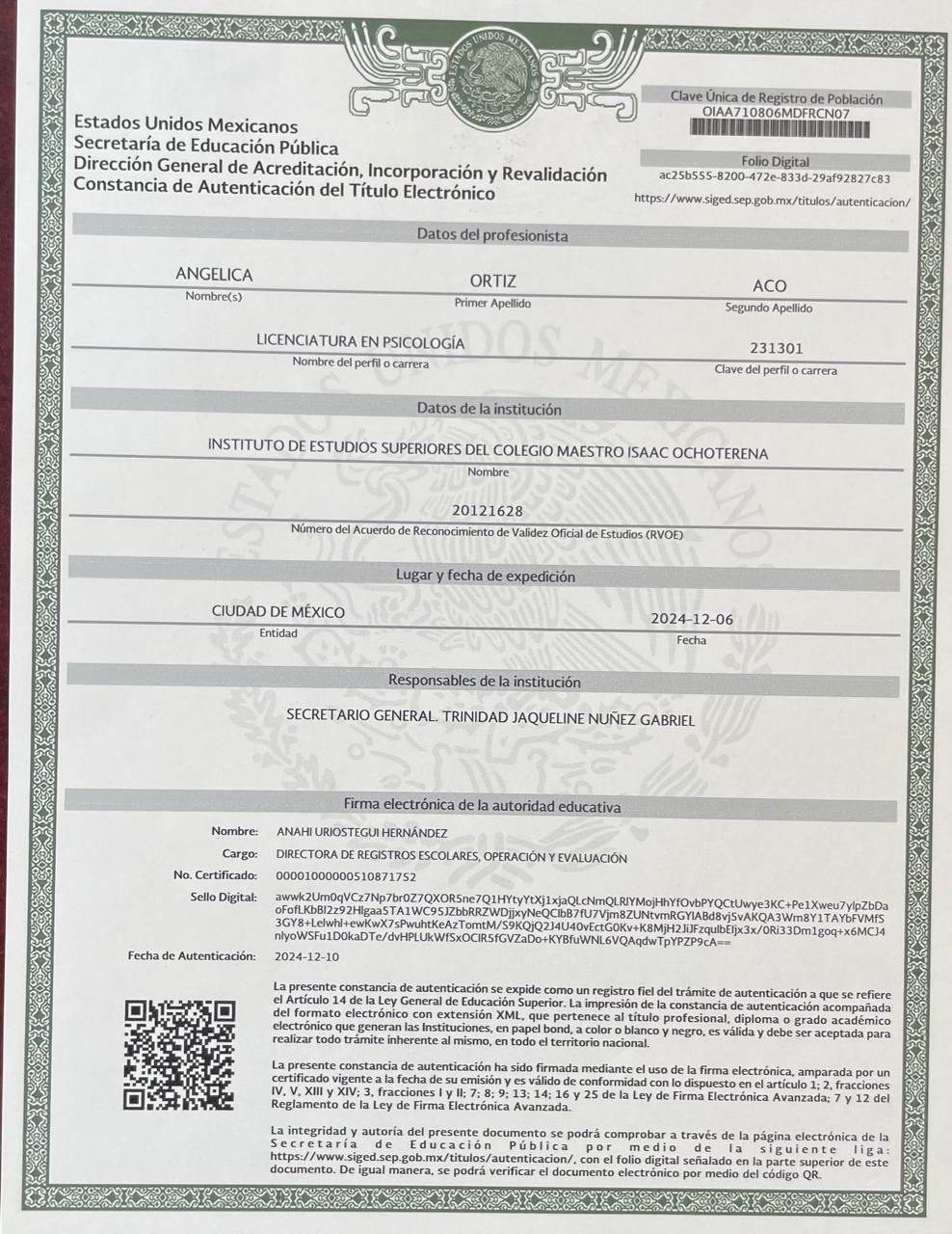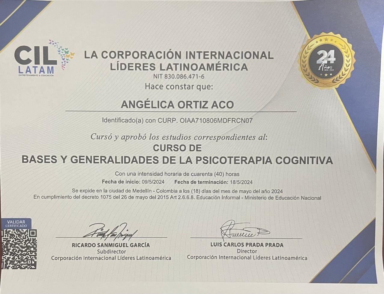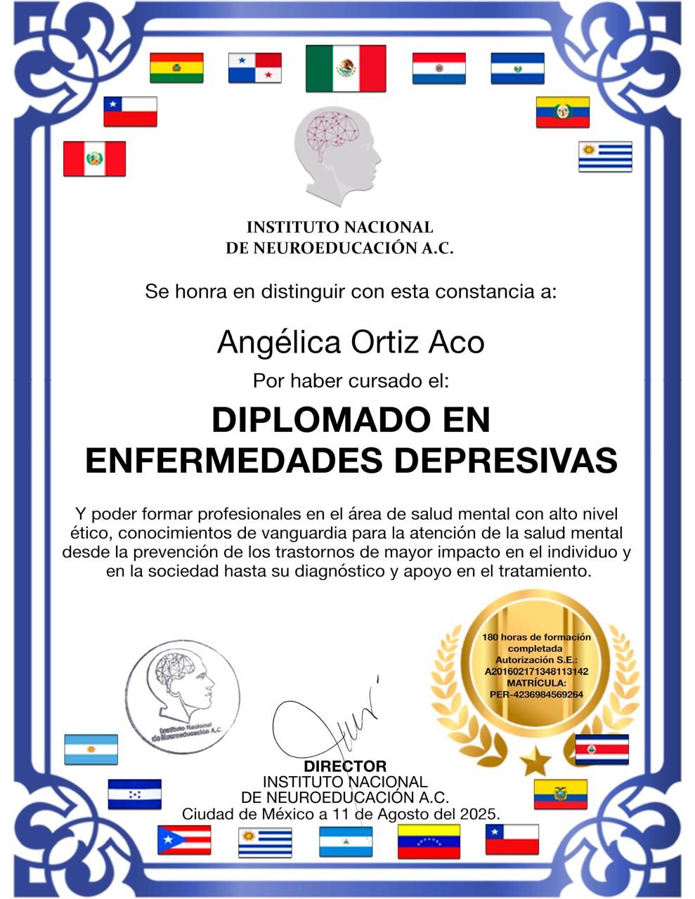 En terapia me puede dar cuenta que la salud mental es un área fundamental y sumamente importante que aborda cuestiones como la depresión, la ansiedad, la psicóloga Angelica Ortiz nos hace mucha énfasis en la comprensión de la salud mental no se limita al tratamiento de los trastornos; también implica promover el bienestar y la resiliencia. La psicóloga es muy positiva, se centra en hacernos ver en lo que hace que la vida merezca la pena y en cómo las personas pueden desarrollar todo su potencial. Consideró su u intervención eficaz y de calidad en lo personal me ayudó mucho a ver la vida desde otro enfoque trabajando mi amor propio.