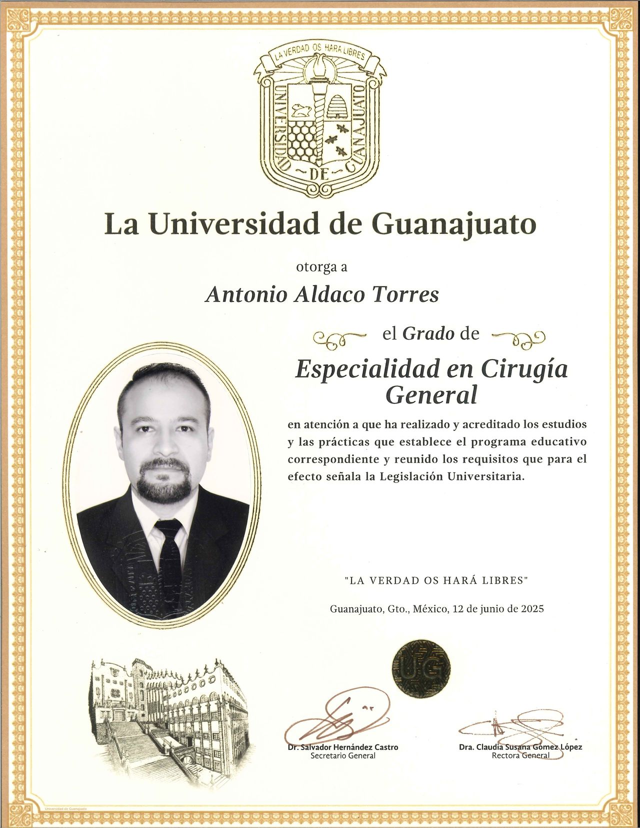 • Dr. Antonio Aldaco Torres, Cirujano General • Visita Cirugía General •