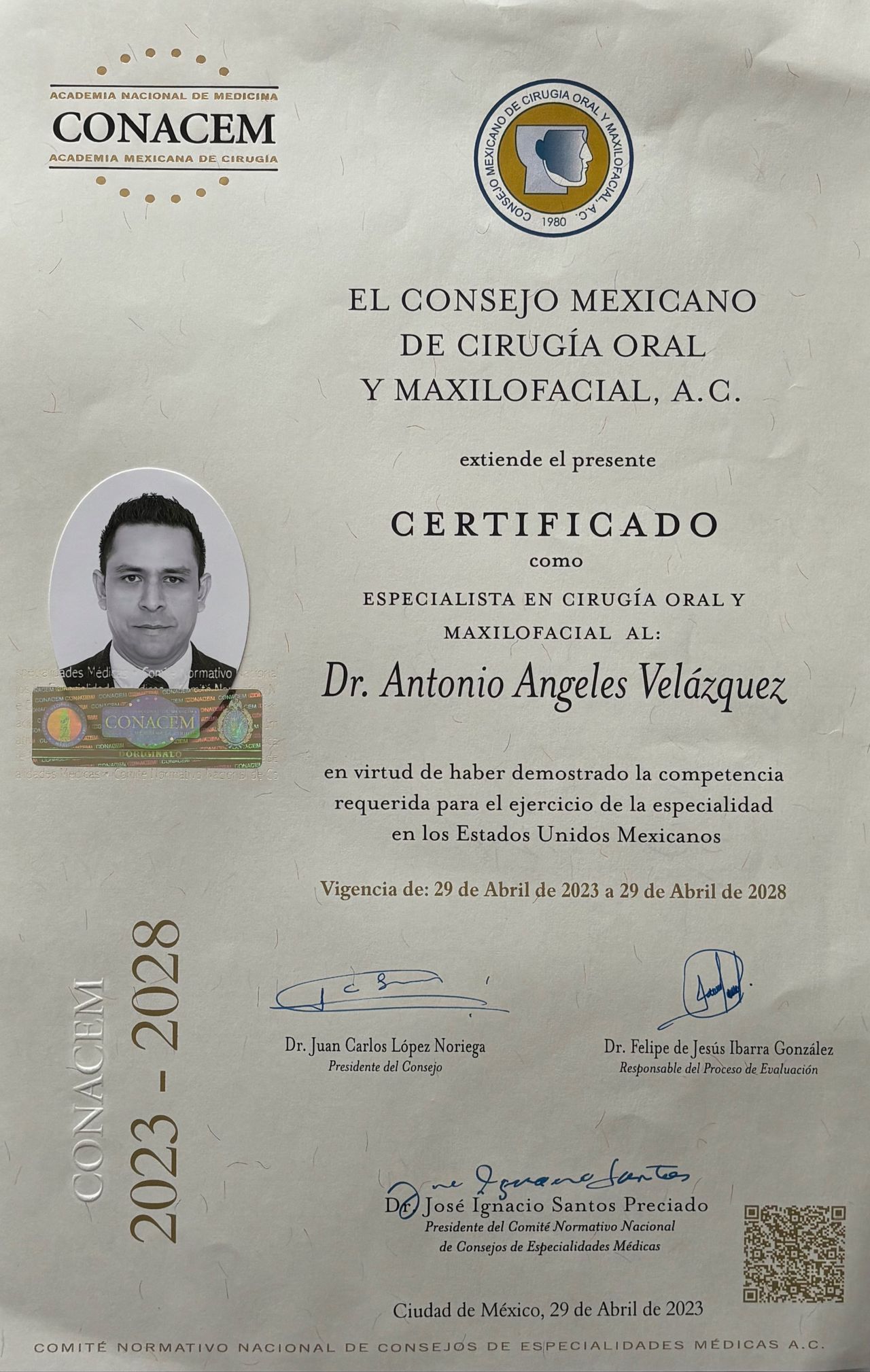 ¡Hola! Soy el Dr. Antonio Angeles, especialista en Cirugía Oral y Maxilofacial con más de 13 años de experiencia. Me enfoco en el diagnóstico y tratamiento quirúrgico de padecimientos bucodentales complejos, desde extracciones de terceros molares, manejo de infecciones, heridas y fracturas de la cara hasta cirugía ortognática y cirugía reconstructiva entre otras.