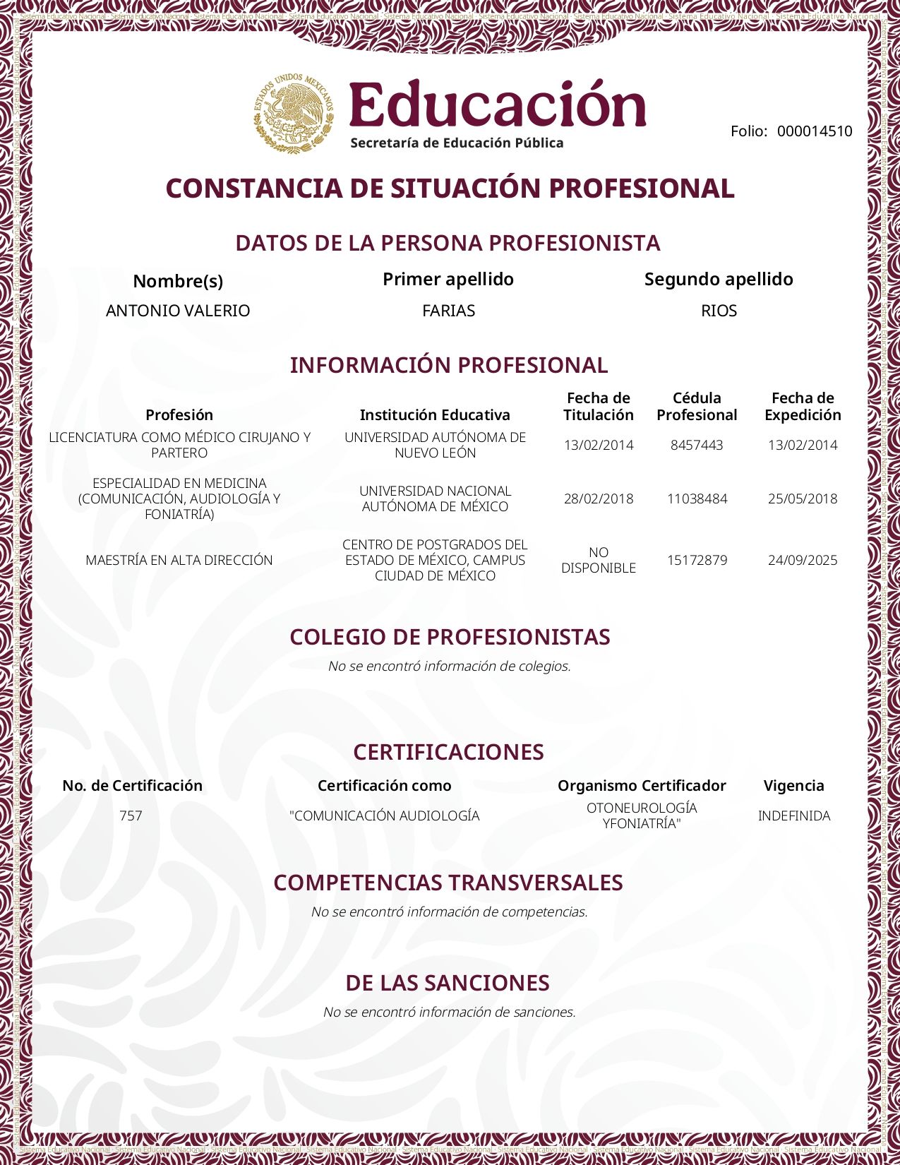 Gracias porque la consulta fue sin apurarme en algún momento y detalle de consulta fue muy específico