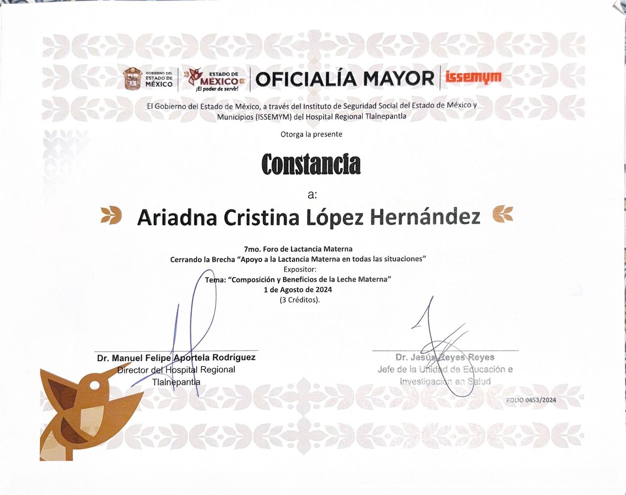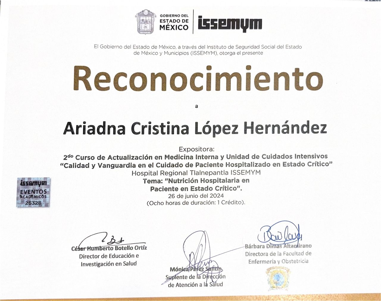Actualmente formo parte del Servicio de Nutrición en el Hospital Regional Tlalnepantla, ISSEMYM.