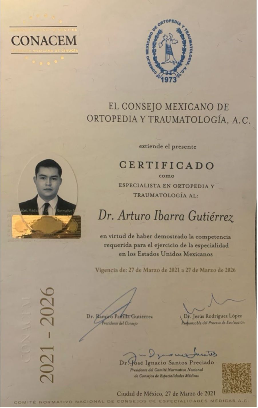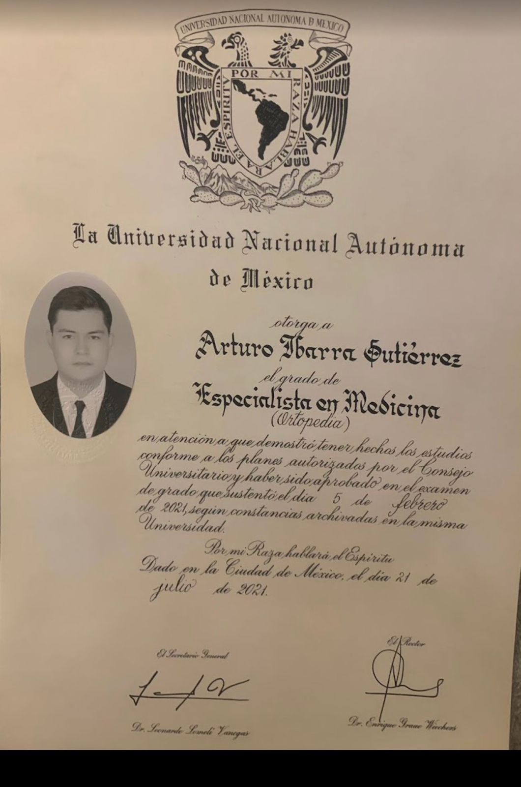 Hola, soy el Dr. Arturo Ibarra Gutiérrez, médico especialista en Traumatología y Ortopedia, egresado de la Universidad Nacional Autónoma de México (UNAM).