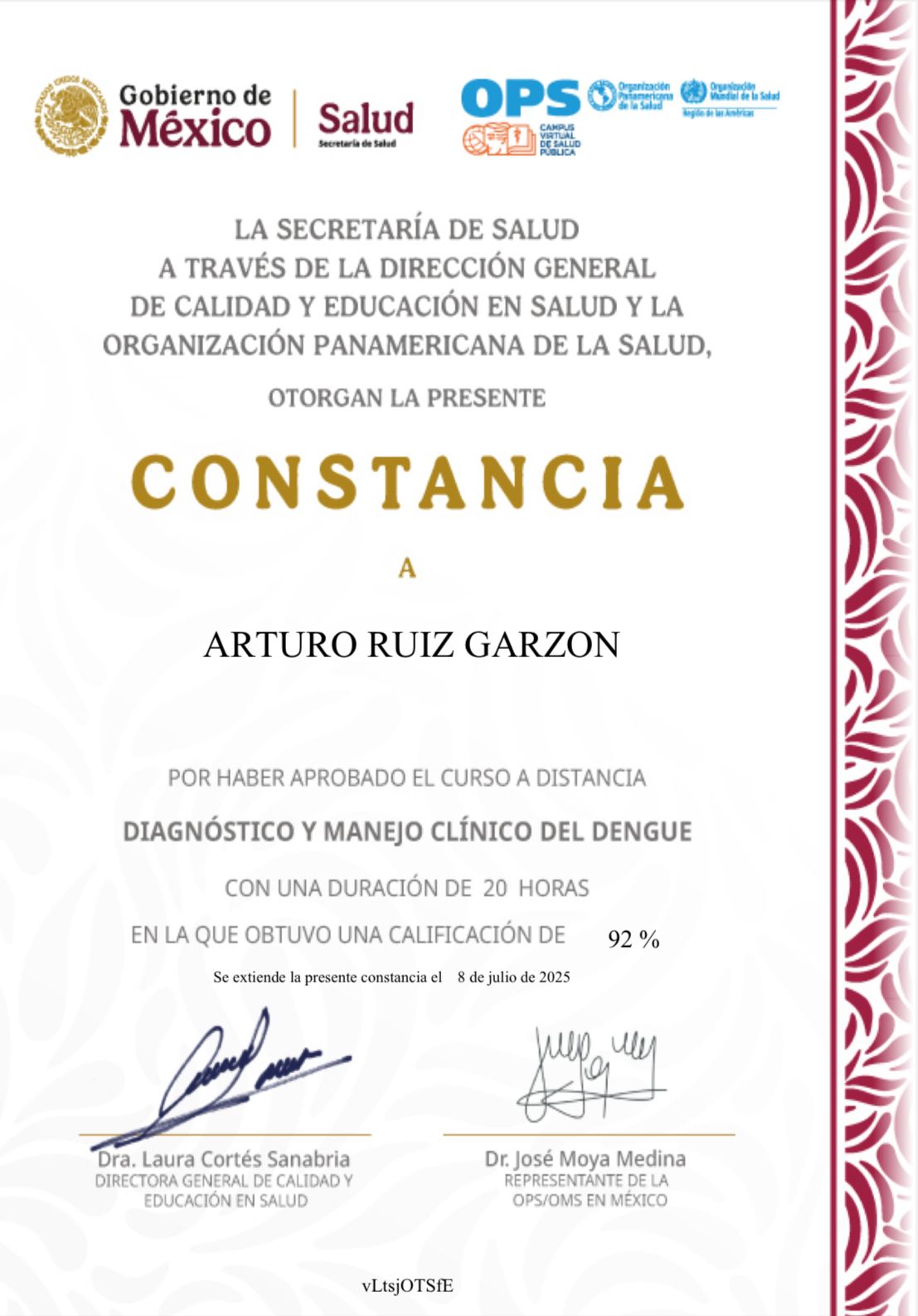 Mi experiencia con el doctor Arturo Ruiz fue altamente satisfactoria. Se distinguió por su profesionalismo, calidad humana y atención respetuosa, además de su disposición para explicar con claridad y paciencia cada detalle. Sin duda, es un médico digno de recomendación.