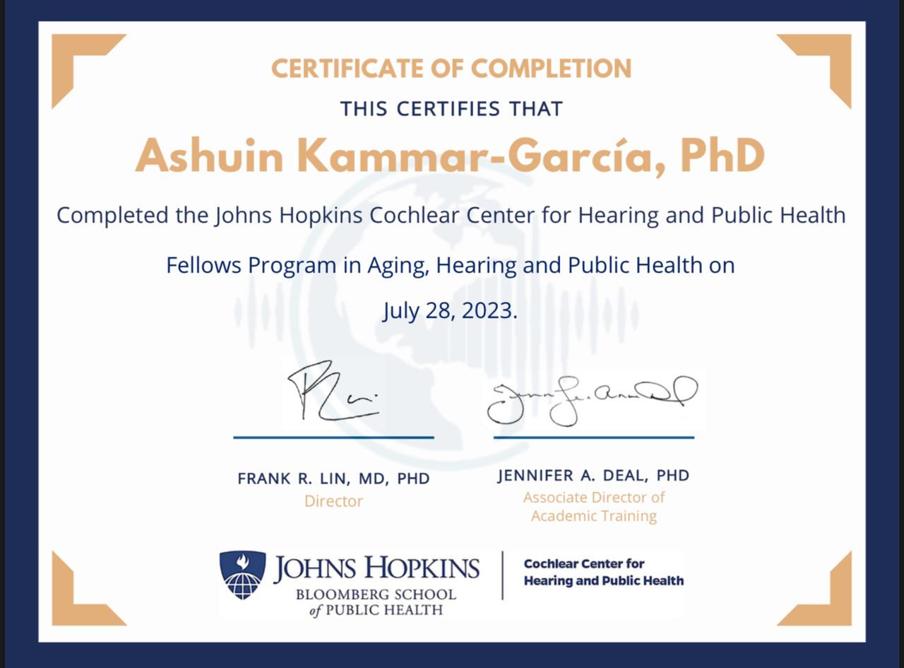 Fellow in Aging, Hearing and Public Health. Johns Hopkins University. (Baltimore USA, 2023)