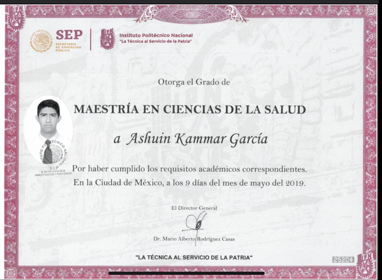 Maestría en Ciencias de la Salud. Instituto Politécnico Nacional (México, 2019)
