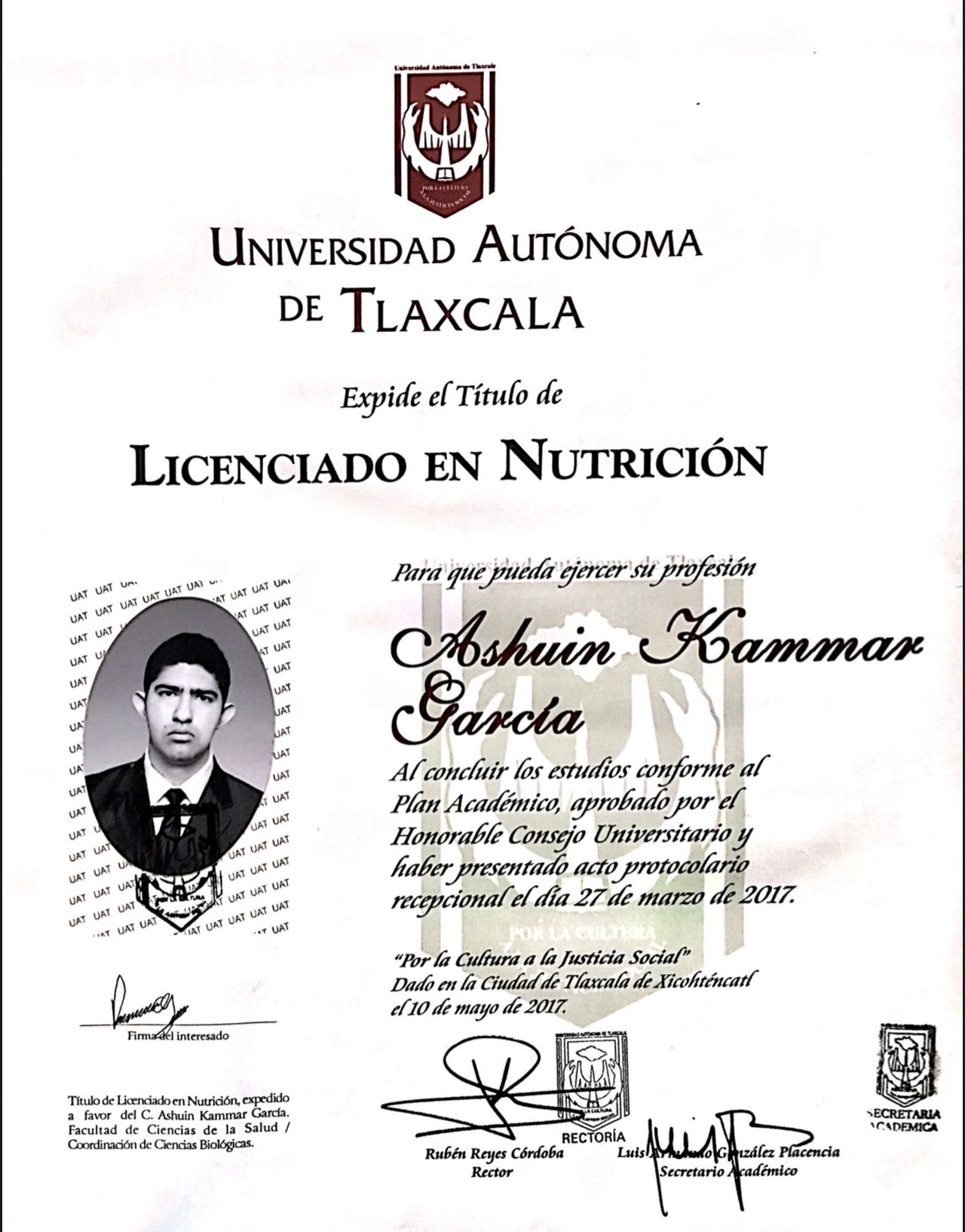 Licenciatura en Nutrición. Universidad Autónoma de Tlaxcala (México, 2017)