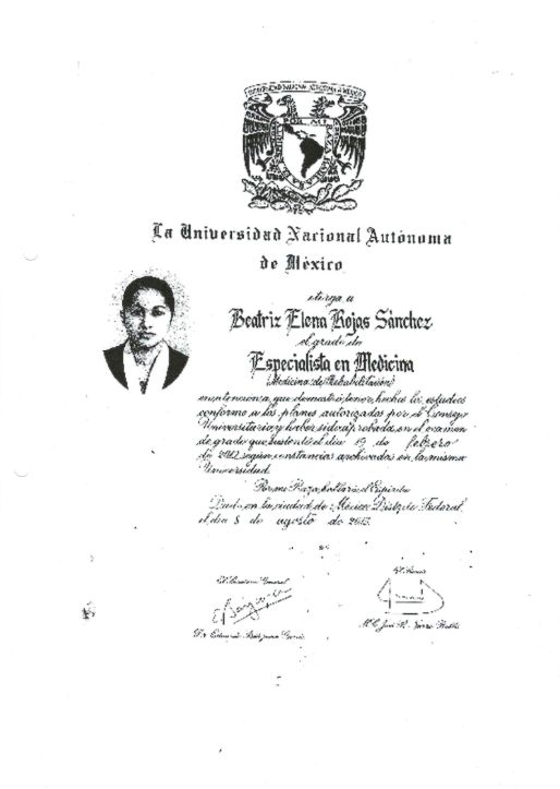 Soy la Dra. Beatriz Elena Rojas Sánchez, especialista en Medicina de Rehabilitación egresada de la UNAM. Cuento con amplia experiencia en el tratamiento integral de discapacidades y recuperación funcional. Mi enfoque se centra en brindar una atención humana y profesional para ayudar a mis pacientes a recuperar su calidad de vida.