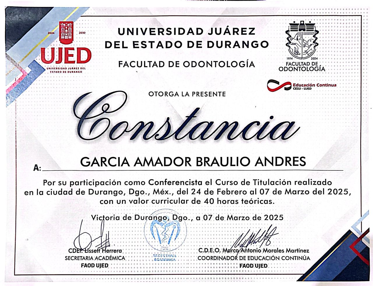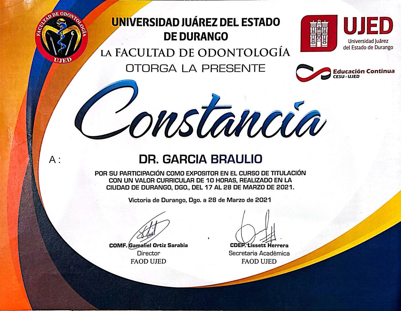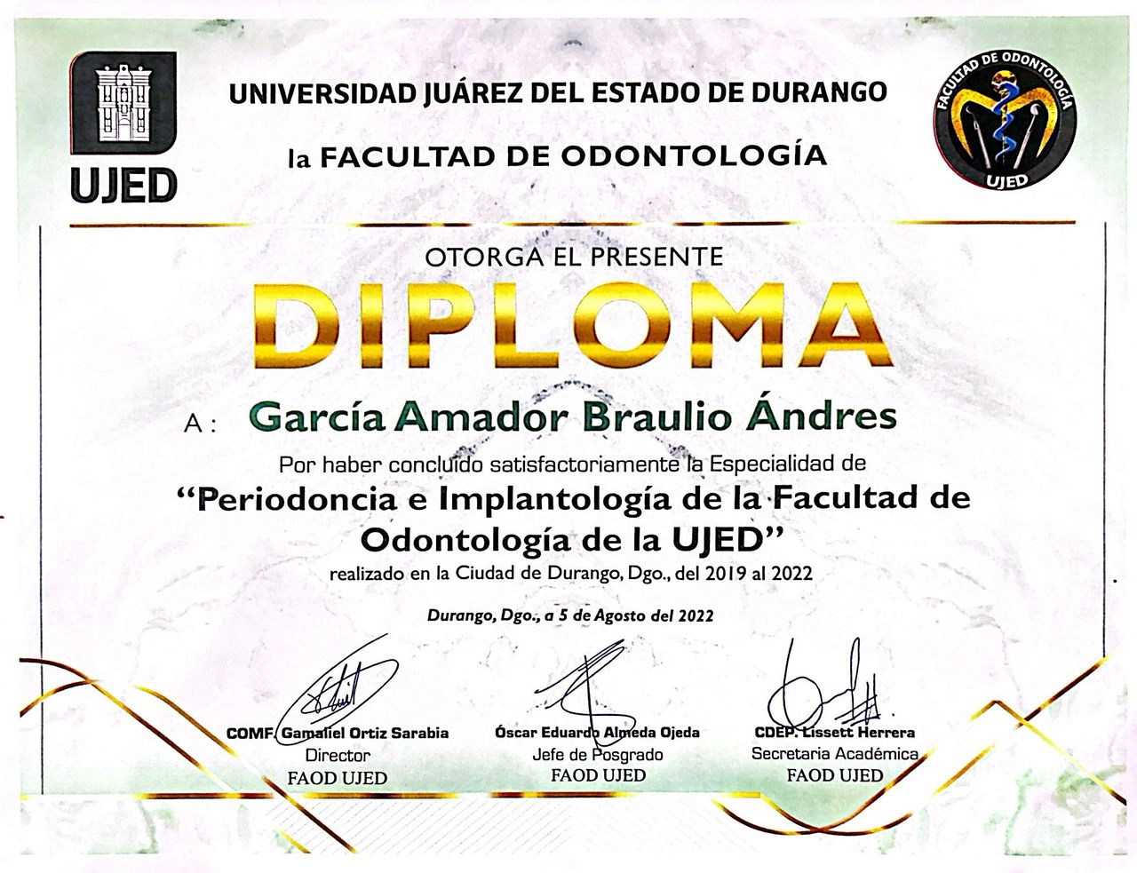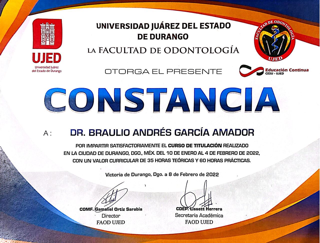 ¡Hola! Soy el Dr. Braulio Garcia. Soy Cirujano dentista, con especialidad en Periodoncia e Implantologia. Atendemos pacientes jovenes y adultos. Tratamos enfermedades como la gingivitis, periodontitis, defectos de encia y hueso que rodean a los dientes, asi como tambien implantes dentales para sitios donde hay ausencia de dientes.