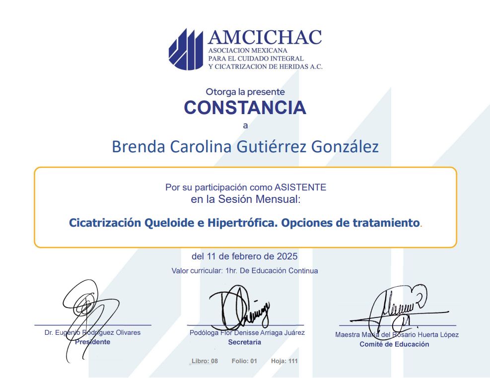 ¡Hola!, soy la Dra. Brenda Gutiérrez y es un gusto para mi poder atenderle y ofrecer mis servicios de consulta de medicina general, así como valoración de heridas crónicas y agudas. Egresé en 2012 de la Facultad de Medicina en la Universidad Veracruzana, trabajando en diferentes regiones del país y con diversos especialistas, encontrando un gusto particular por la cura de heridas. Actualmente curso un diplomado en heridas y ostomías en AMCICHAC. Espero poder contribuir a la prevención, manejo y cura y/o rehabilitación de los padecimientos de nuestros pacientes, para mejora de su calidad de vida.