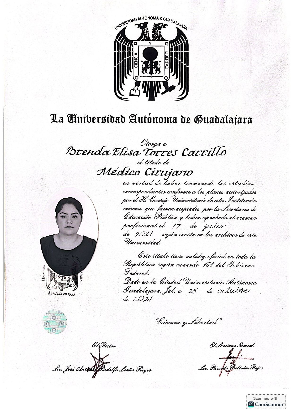 Soy la Dra. Brenda Torres; médico cirujano egresada de la Universidad Autónoma de Guadalajara