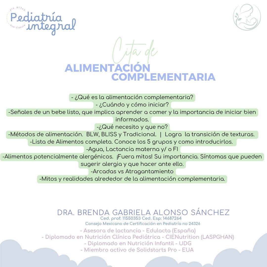 Soy la Dra. Brenda G. Alonso. Médico Pediatra egresada del Hospital Materno Infantil ISSEMyM. Egrese hace no muchos años con la ilusión de aportar mi granito de arena y generar un cambio positivo en la consulta médica pediátrica, sin embargo, al poco tiempo me di cuenta de la gran cantidad de mitos que aún existen alrededor de la medicina y la pediatría, por lo que me propuse ser un lugar abierto y actualizado, basado siempre en la ciencia/evidencia científica ….de ahí que saliera mi lema de la consulta: sin mitos, con-ciencia.
