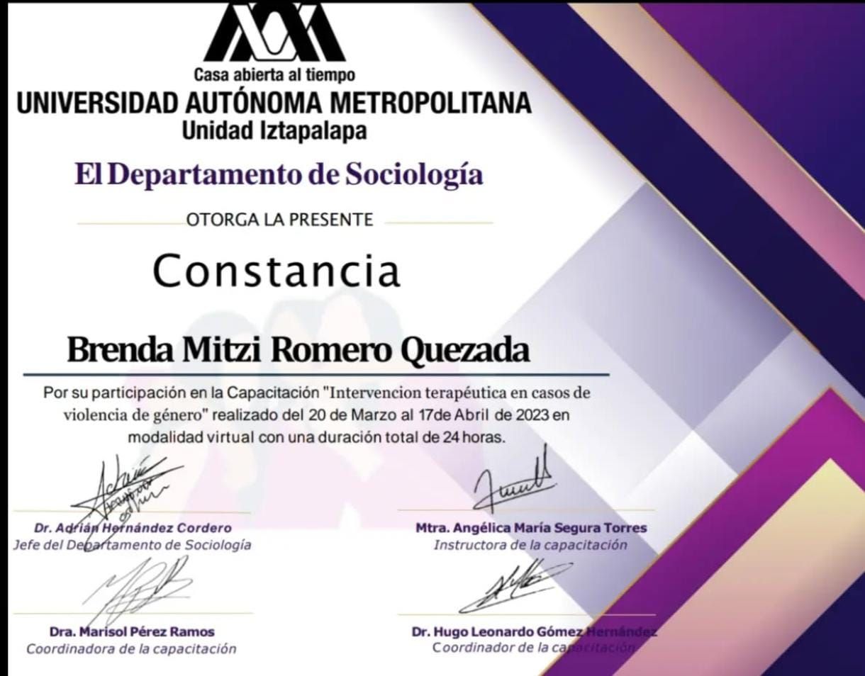 Recomiendo totalmente a la psicóloga Brenda. Es muy profesional y empática. Su guía me ayudó a ver las cosas desde otra perspectiva y a hacer cambios positivos en mi vida.