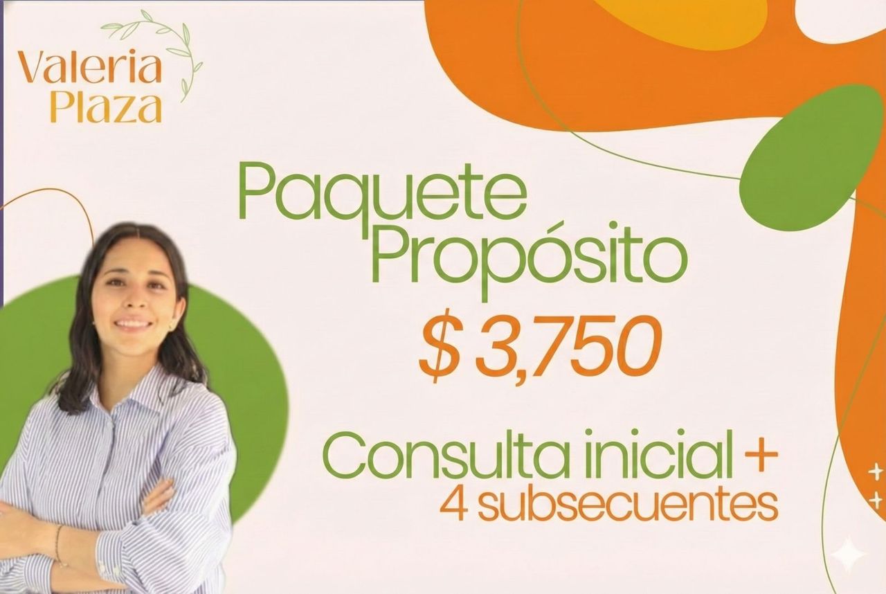 El Paquete Propósito está diseñado para brindarte acompañamiento personalizado y seguimiento continuo para lograr tus objetivos de salud y bienestar. En cada consulta trabajaremos en conjunto para desarrollar un plan integral que se adapte a tus necesidades específicas.