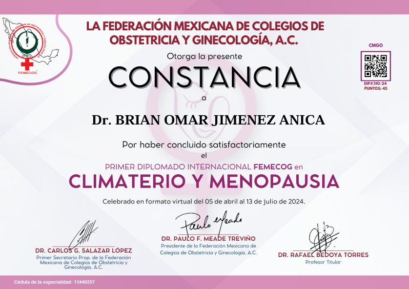 Hola soy el Dr. Brian Omar Jiménez Anica, especialista en Ginecología y Obstetricia en la Ciudad de Orizaba, Veracruz certificado por el Consejo Mexicano de Ginecología y Obstetricia, mi principal compromiso es con la salud de la mujer en las diferentes etapas de su vida.