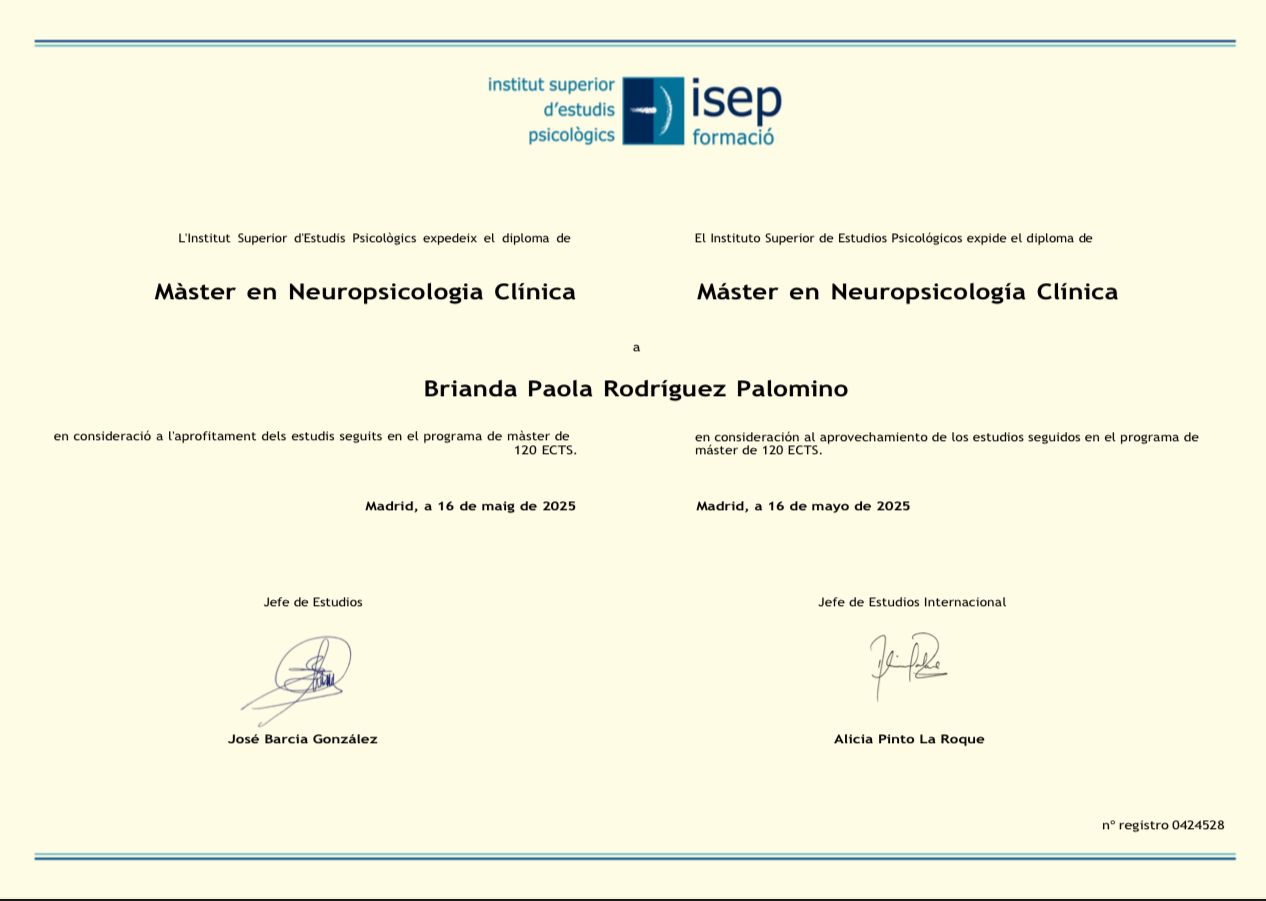 Soy Licenciada en Psicología con un Máster en Neuropsicología Clínica.