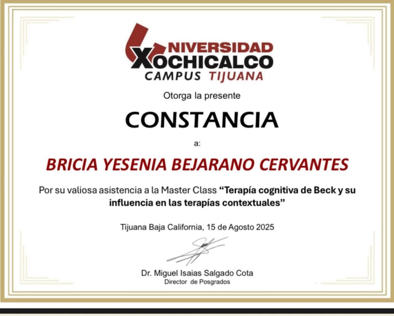 Soy Licenciada en Psicología con especialización en adultos y experiencia en el tratamiento de ansiedad, dependencia emocional y estrés laboral. Estudié en la Universidad de las Californias Internacional y continué mi formación en Educación Especial e Inclusión en la Universidad Xochicalco y actualmente estoy cursando la maestría en psicoterapia cognitivo conductual en universidad xochicalco .