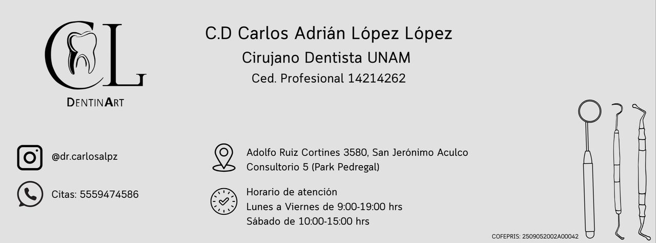 ¡Hola! Soy el Dr. Carlos Adrián López López. Soy cirujano dentista por la UNAM. Apasionado por brindar atención integral, ética y personalizada a cada paciente.