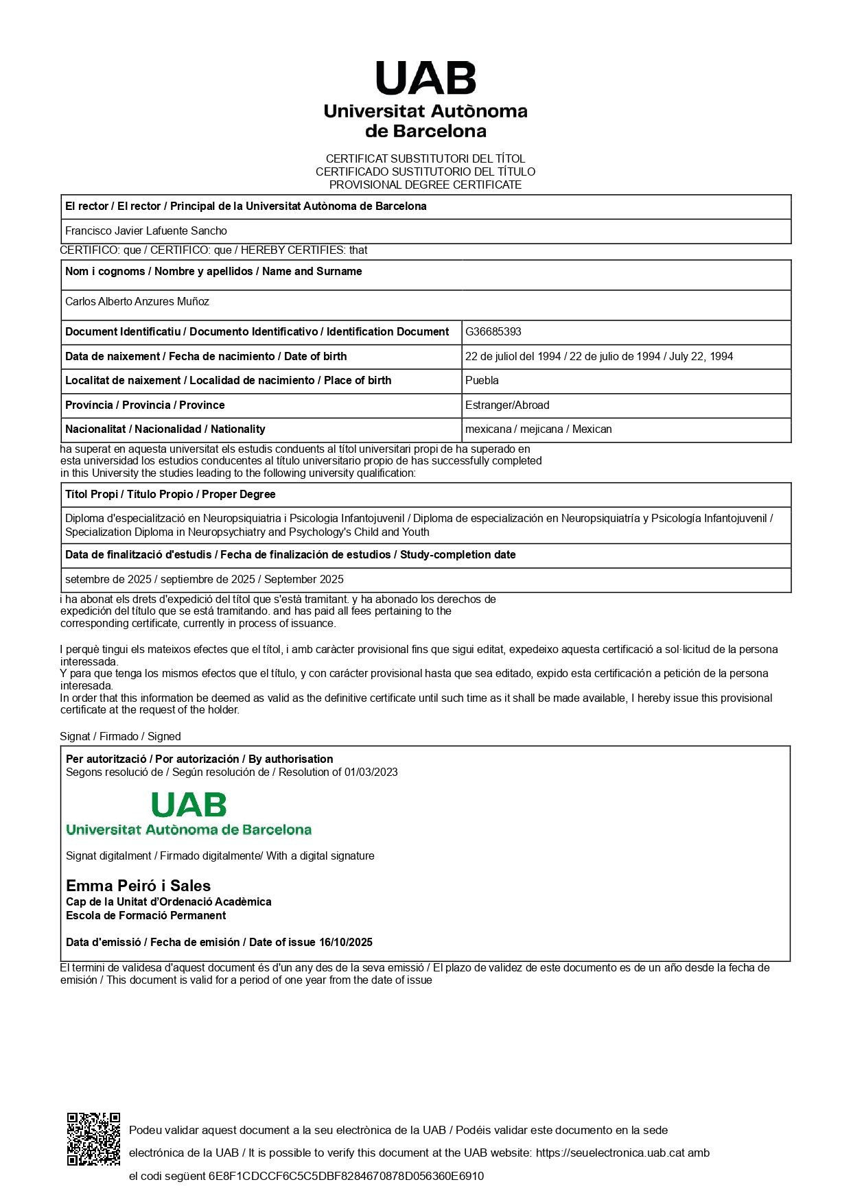 Médico Psiquiatra formado en el Hospital Español de México con reconocimiento de estudios por la UNAM y Certificado por el Consejo Mexicano de Psiquiatría, así como con Entrenamiento en Terapia Cognitivo Conductual, Posgrado en Neurociencia Cognitiva y Especialización en Neuropsiquiatría y Psicología InfantoJuvenil. Actualmente me encuentro en formación de Maestría en Psicología Clínica.