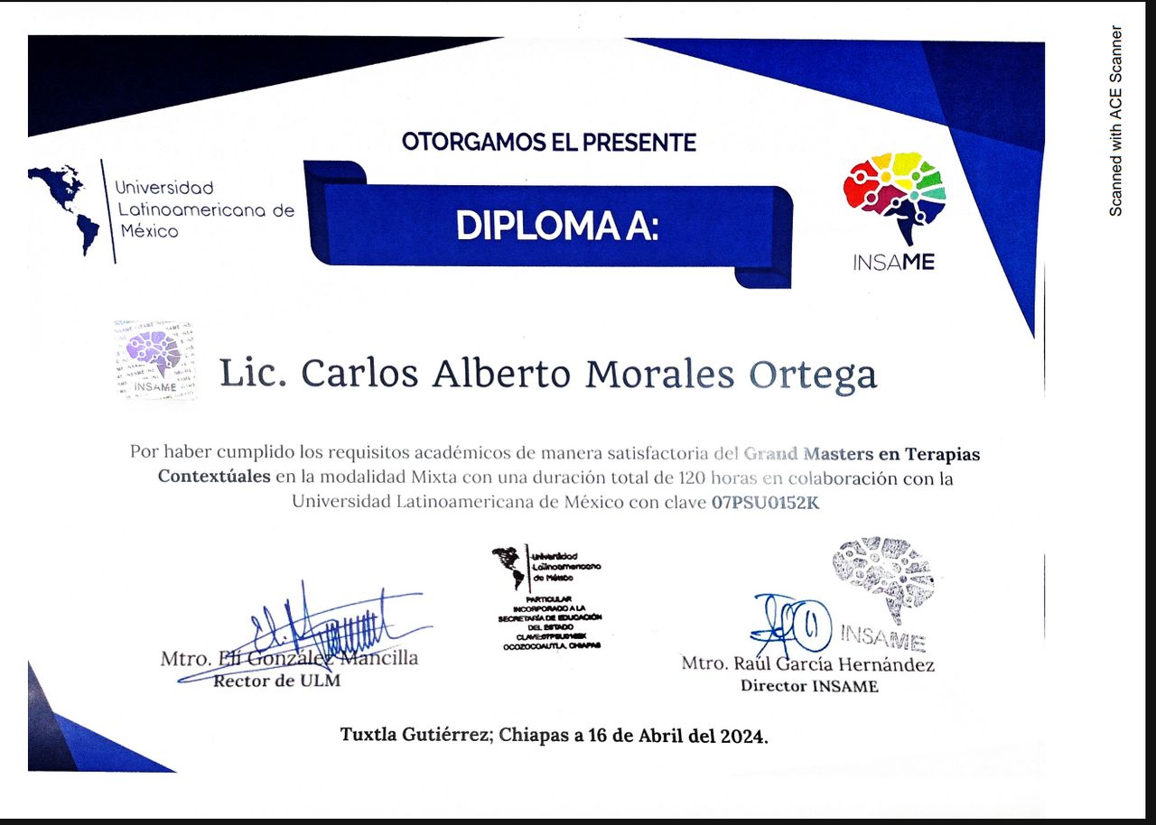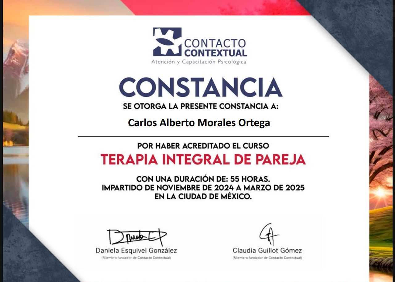 Mi experiencia con Carlos fue realmente transformadora. Desde la primera sesión me sentí escuchada, comprendida, validada, aliviada y muy pronto vi resultados positivos, gracias a la terapia con él, he aprendido a identificar y gestionar mis emociones de manera más efectiva, mejoré mi autoestima, obtuve herramientas para enfrentar los desafíos que estaba pasando por esa etapa de mi vida. Además, me gustaría destacar su profesionalidad y su dedicación. Siempre estuvo disponible para responder a mis preguntas y dudas sobre la terapia y se aseguró de que me sintiera cómoda y segura en todo momento, su enfoque de Aceptación y compromiso, su capacidad para escuchar activamente, su tacto al decir las cosas me ayudaron a ver las cosas desde una perspectiva diferente y a tomar decisiones más pensadas y decisiones que en su momento me llegaron a salvar mi vida, no lo hubiera podido hacer sin la terapia, ha sido uno de los mejores regalos que me he dado a mí misma.